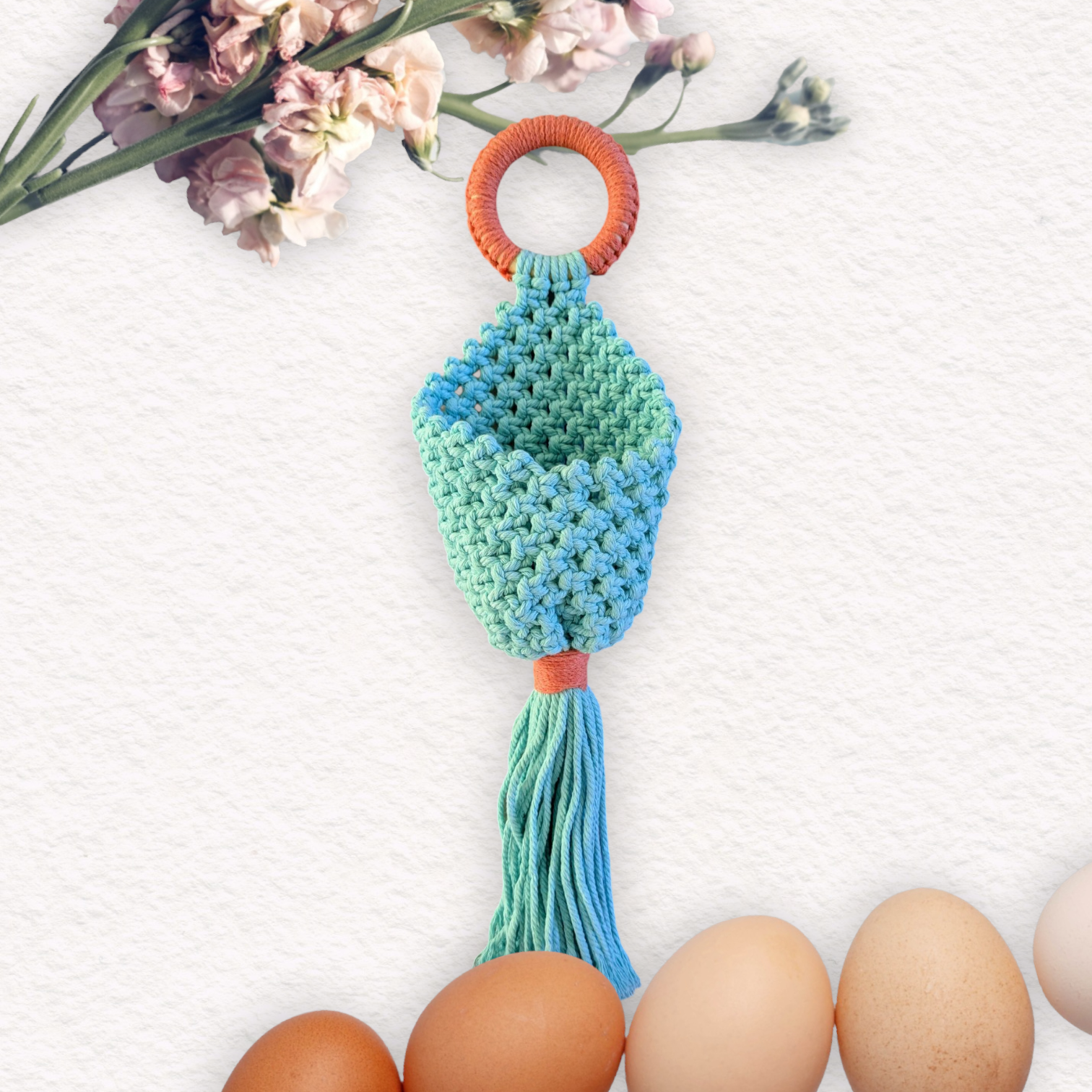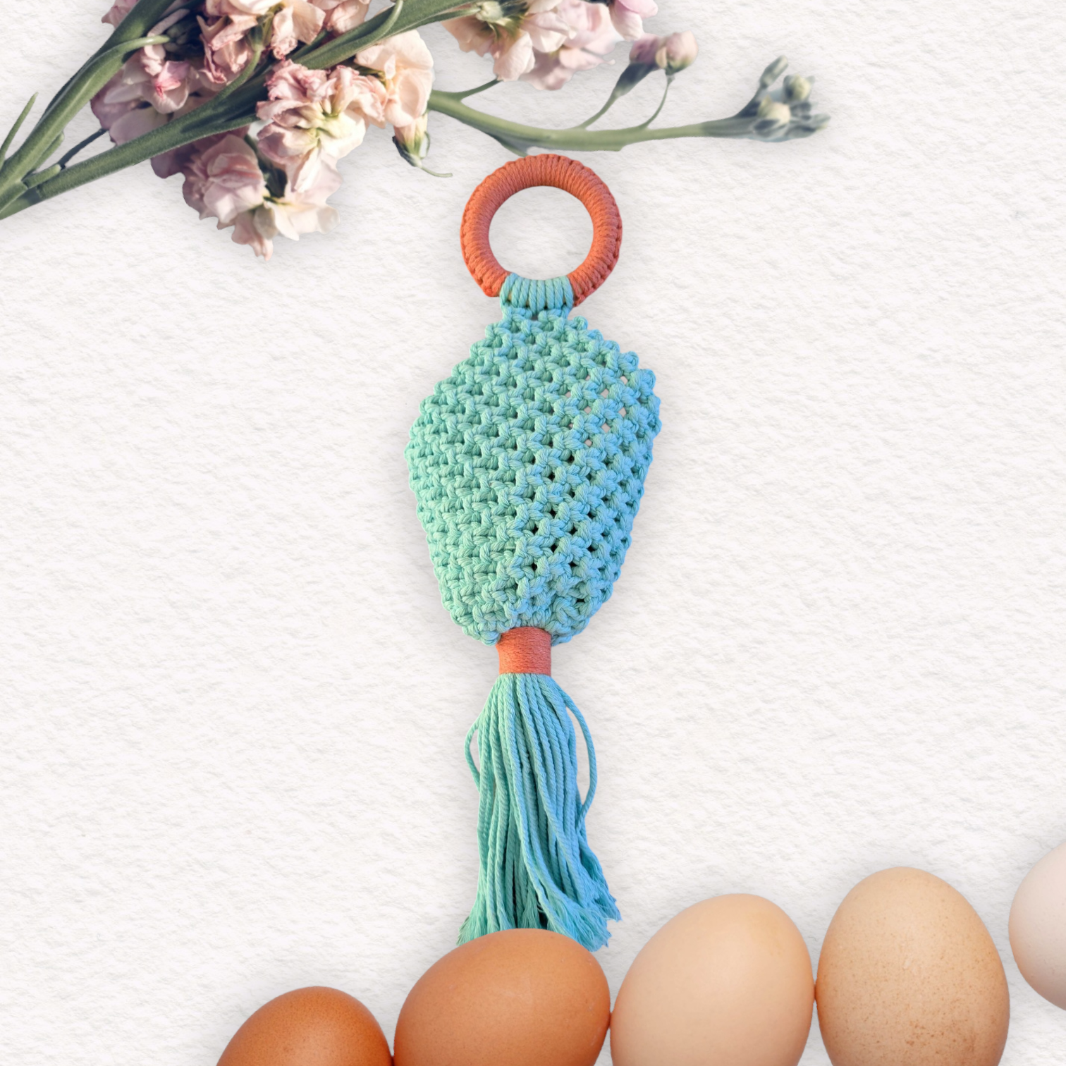 Découvrez ce magnifique porte-œufs en macramé, parfait pour la saison ! 🌼✨