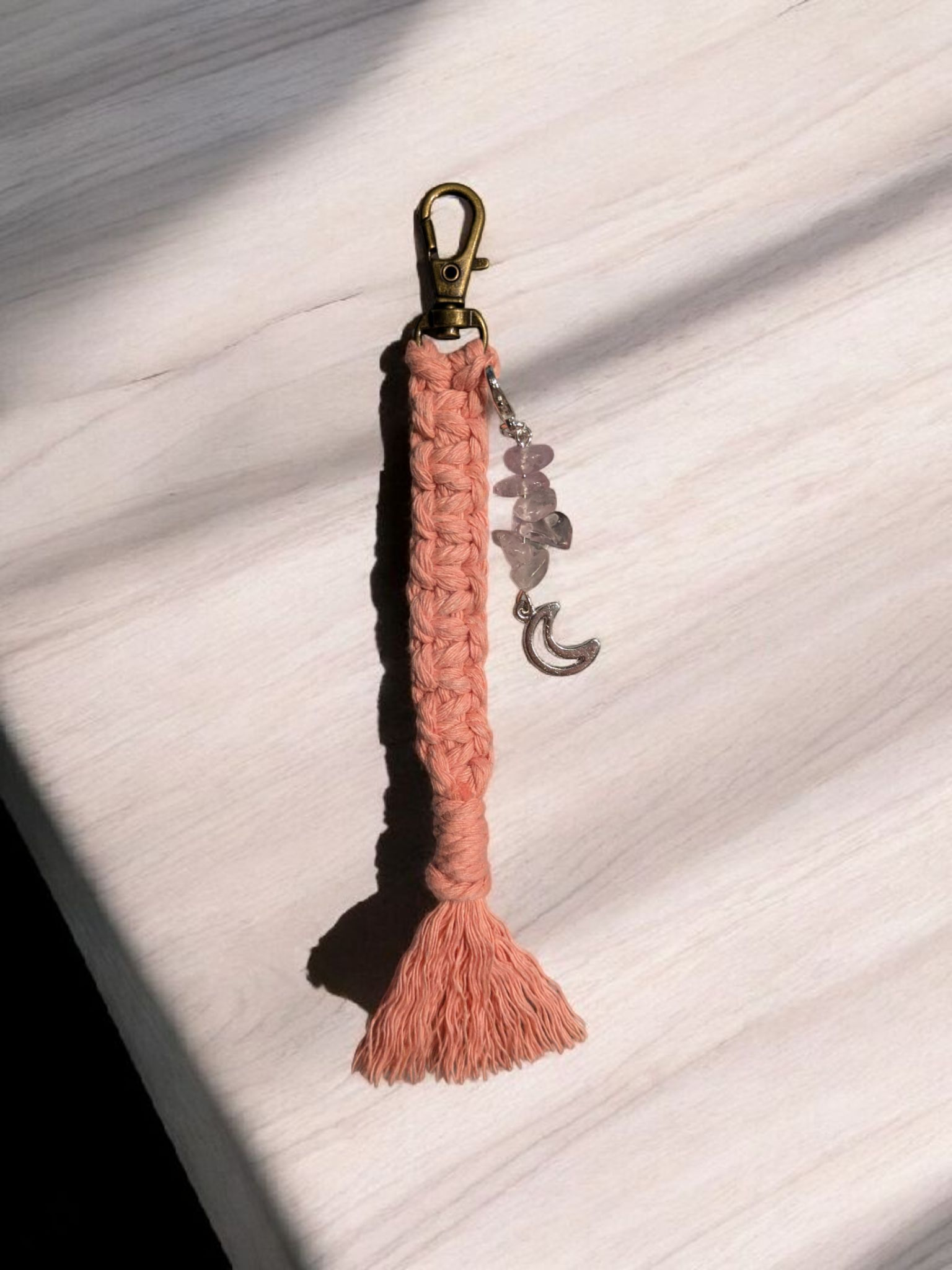 ✨ Ajoutez une touche de charme à votre quotidien avec ce porte-clés en macramé ! 🌸 Pratique et stylé, il est parfait pour égayer vos clés et ne jamais les perdre de vue
