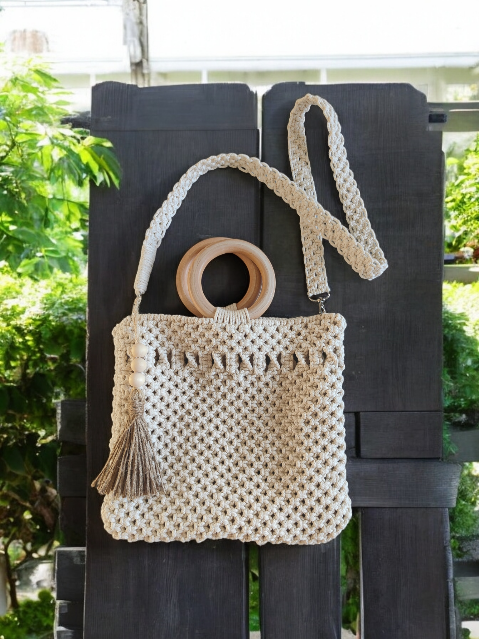 Cette petite beauté en macramé est le complément parfait pour chaque tenue ! Son charme bohème et ses détails délicats ajoutent une touche unique à votre style.